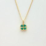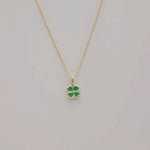 Green Emerald Clover Bezel Pendant Necklace